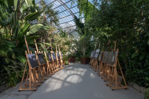 In 2019 Art Arcadia and the Liverpool Irish Festival tag-teamed a residency to create Watch me grow/a trip here a trip there, an installation spanning the duration of the Festival from its base at Sefton Park Palm House. Paola Bernadelli fuelled a visual dialogue with Locky Morris, an artist living in Derry (Paola’s usual home) creating a series of images, which we printed daily as part of the exchange. It was an exchange of ideas, spaces, talents… and the results are charming, funny and unexpected.
