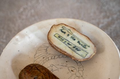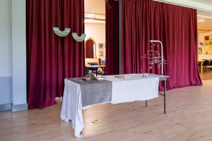 Part of the exhibit is a modest hand-made book that acts as a surrogate for the artist and traditional statement. This is shown alongside sculptures, something Magee, usually a painter, has not shown before. This exhibition is the first solo exhibition of his work in Derry since he left.