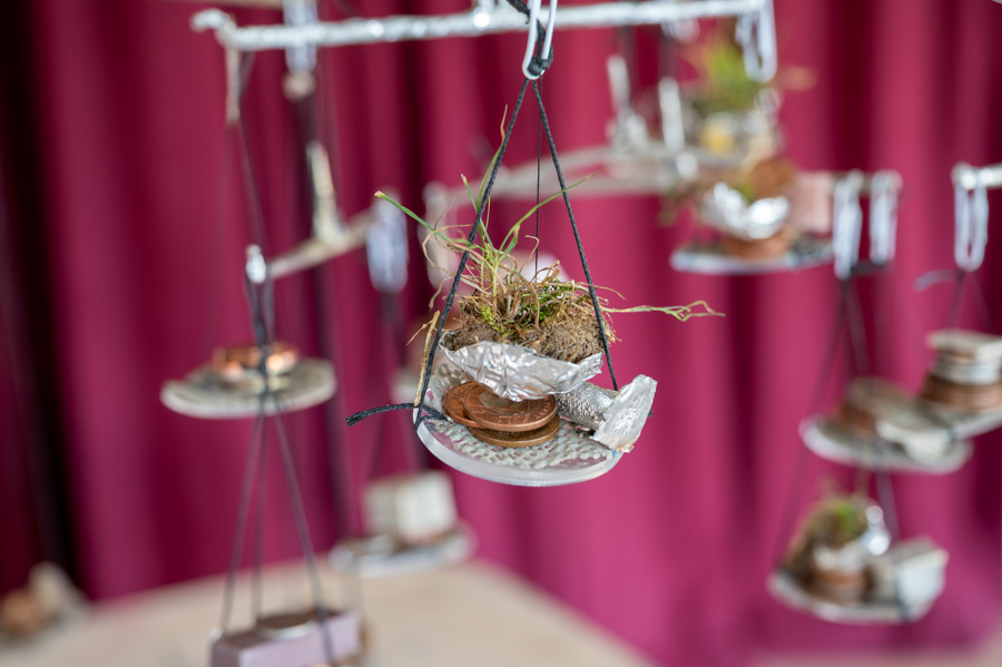 Living with a printout photo of the broken sculpture for some years, Magee has spent time as Art Arcadia artist-in-residence at the U3A Foyle. Accumulated ideas about the scales, balance, or the allegorical figure of Justitia have been weighed against one another, reach- ing a kind of resolution.