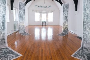 A week-long residency at the Old Schoolhouse at St. Augustine’s prompted an investigation of the space both aesthetically and conceptually. Out of this came a series of works in response to two major reference points: architecture and repetition.